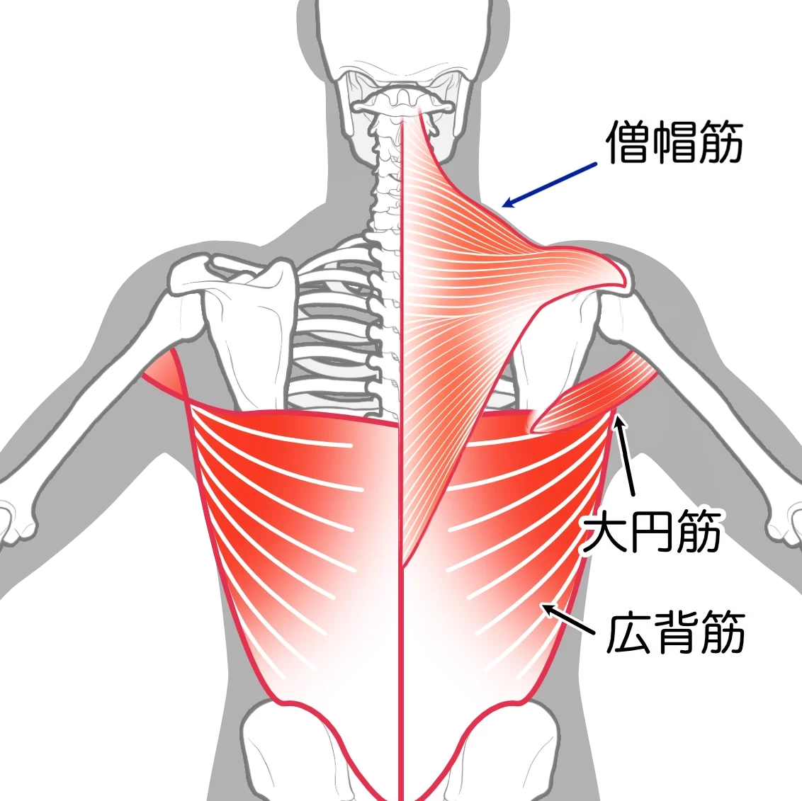 背中: シーテッドロウ|チンニング|デッドリフト|ラットプル|ローロー