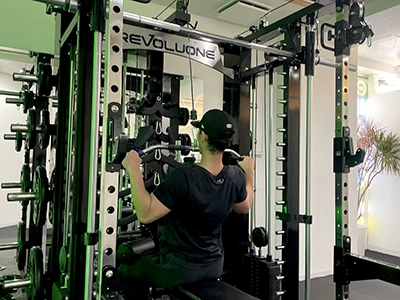 green hornジムでは様々な設備が一体となった複合型マシン「オールインワンスミスマシン」を導入しています。